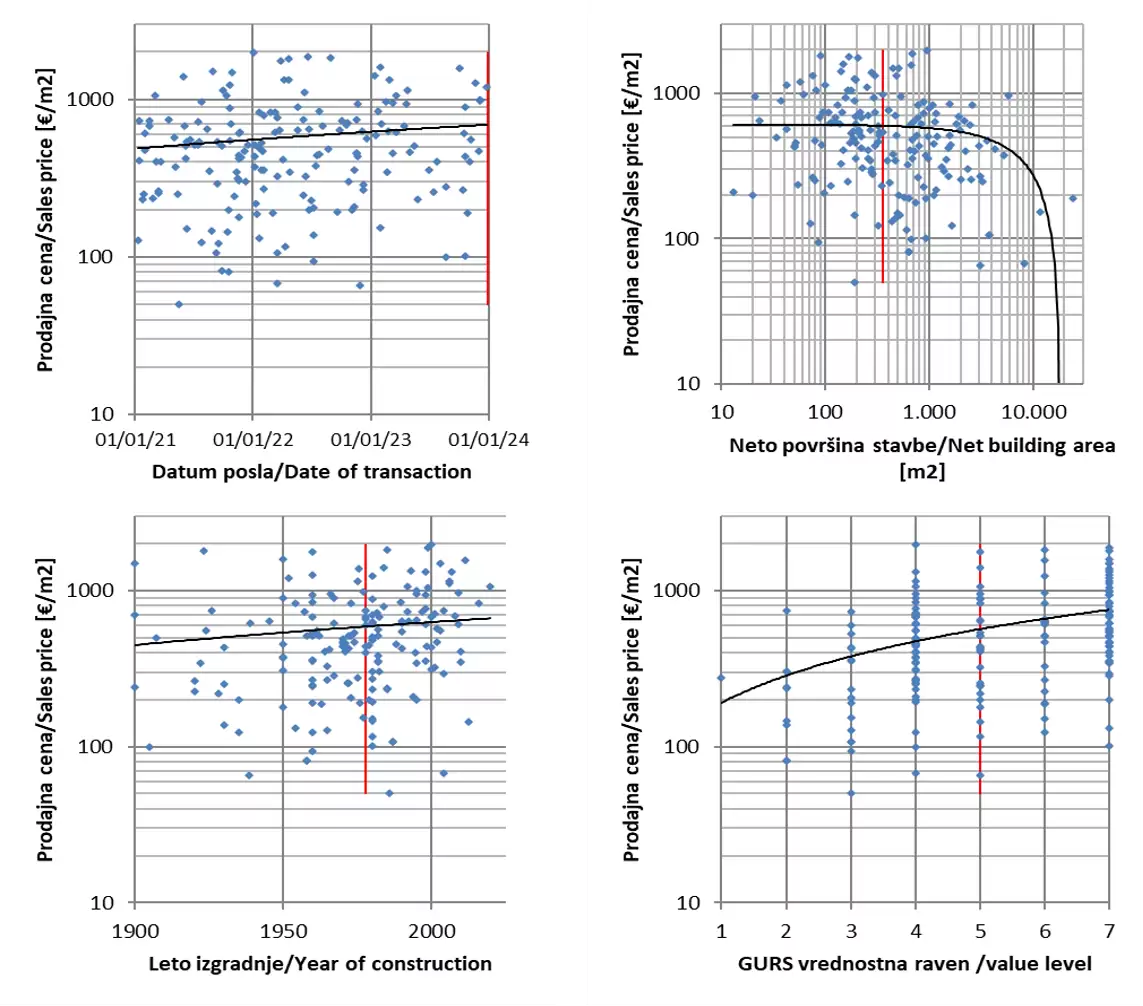 In Slovenia, there are approx. 50 recordes sales of industrial premises, mostly between 200 and 400m2 in size. Transactions fluctuates greatly from year to year. Transactions are mostly made with older objects (50 years). The median selling price of industrial premises is €605/m2, while in the previous year the median was €456/m2. Due to large fluctuations in the market, the prices are also very different, the reliability of the shown data is therefore low. Due to the variety of industrial real estate and the small number of transactions, the annual price growth rate is not possible to determine.