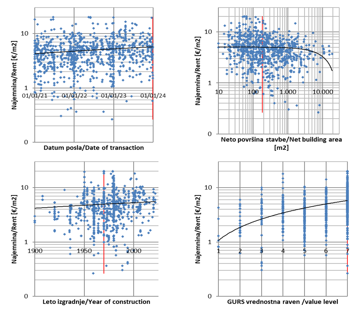 In Slovenia, approx. 300 rental contracts with industrial premises are recorded annually, mostly older (from 1970s) of approx. 200 m2 in size. Rent deals of industrial premises are evenly distributed throughout the country. The median rental price is €5/m2, the spread (1st and 3rd quartile) is from €3.6 to €7.4/m2. The highest rents are achieved in Ljubljana, in the vicinity of Ljubljana and on the coast, prices are significantly lower elsewhere. Rent growth in 2023 was 10%. Due to a lack of adequate data, it was not possible to statistically determine annuale price growth rate for 2022.